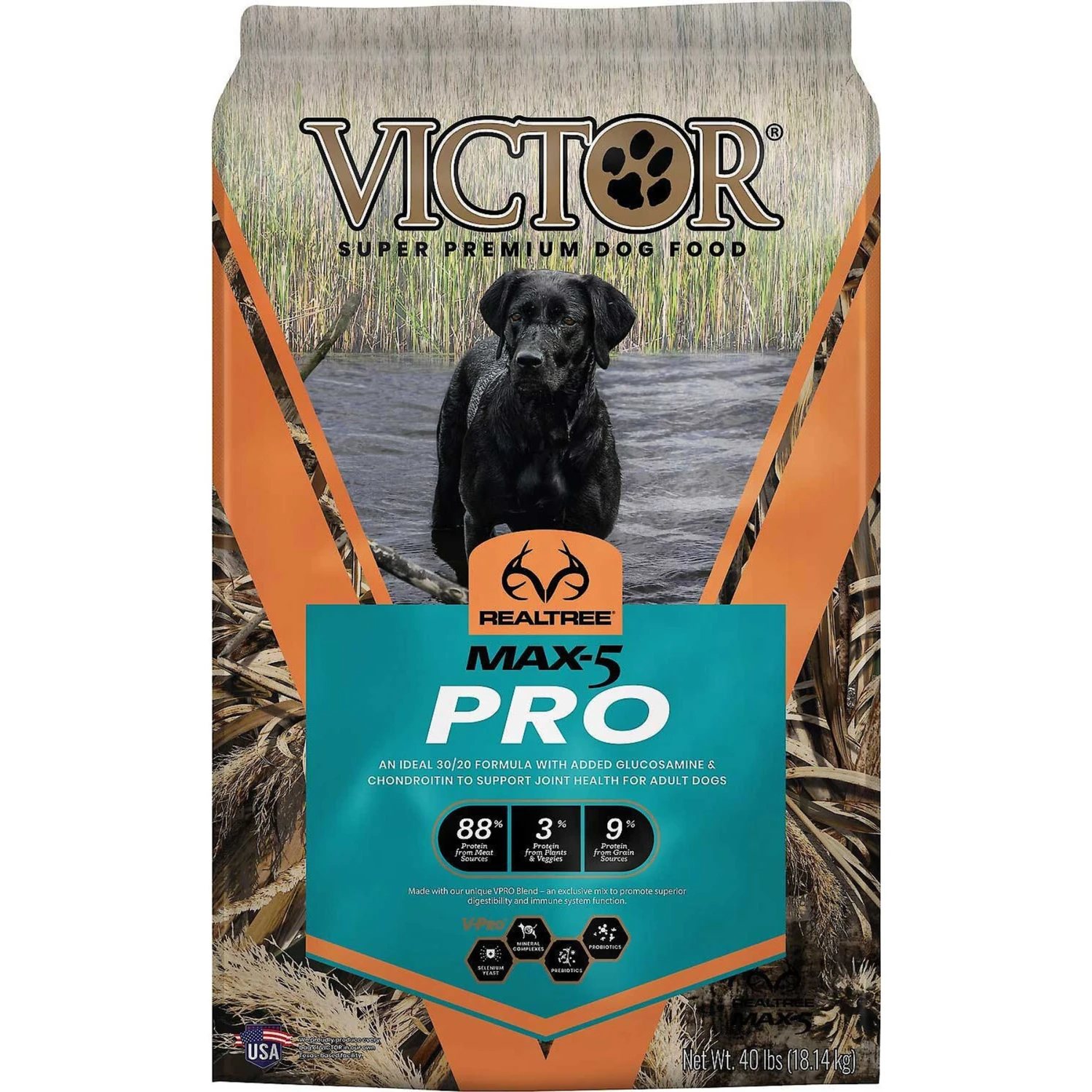 VICTOR Realtree MAX-5 PRO Dry Dog Food & VICTOR Crunchy Treats Lamb Meal Dog Treats