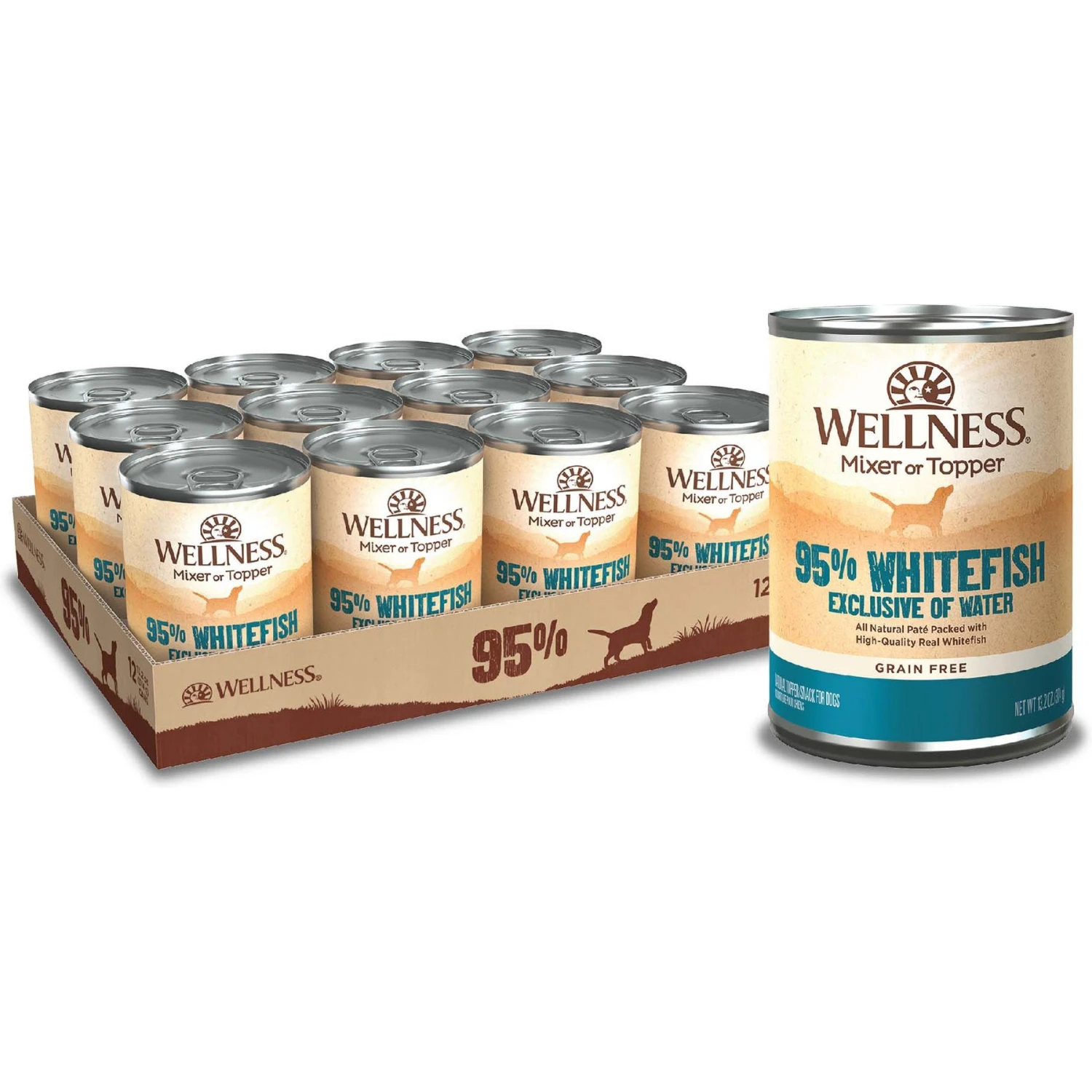 Wellness 95% Whitefish Natural Grain-Free Wet Dog Food Topper, 13.2-oz Can, Case Of 12