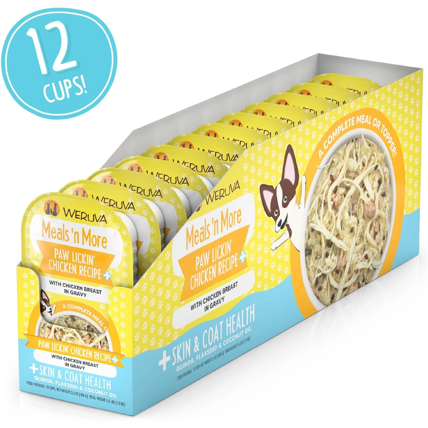 Weruva Meals ‘n More Natural Wet Dog Food, Paw Lickin’ Chicken Plus Skin & Coat Health, 3.5-oz Cup, 12 Count